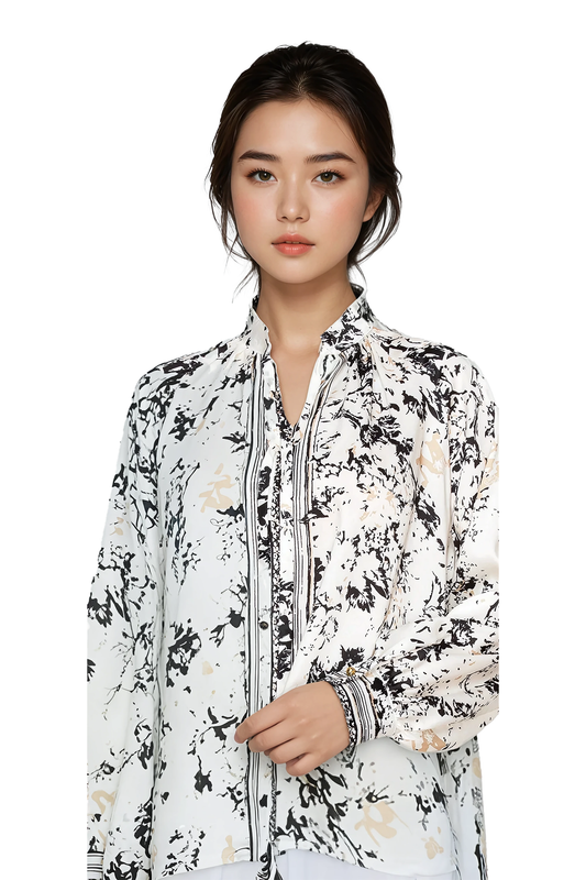 [Nabi] Women’s Abstract Print Long-Sleeve Blouse with High Neck