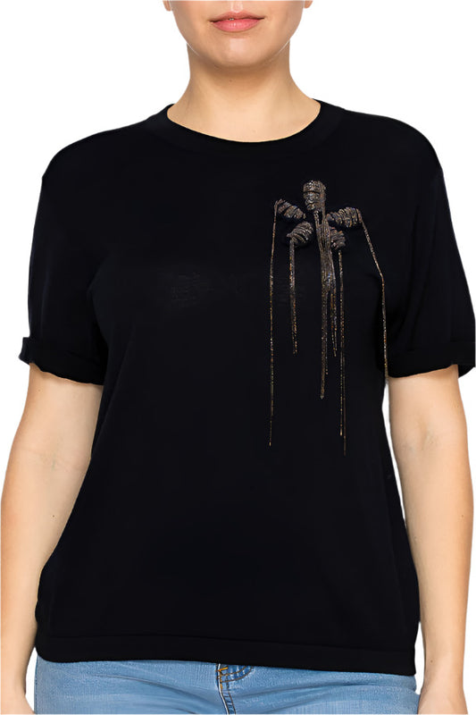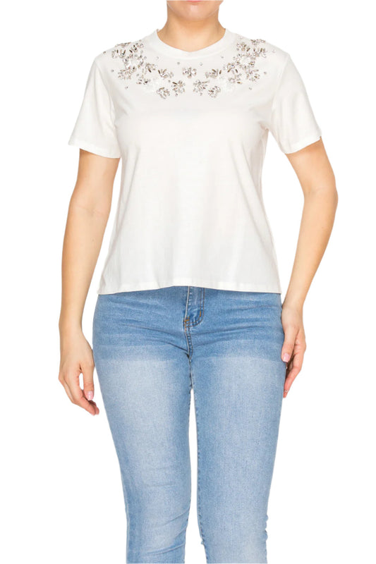 [Nabi] Women’s Embellished Short-Sleeve T-Shirt – White