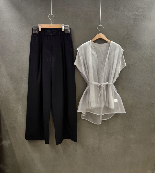 [Giovedi] Women’s High-Waisted Tailored Gray Trousers with Contrast Stitching