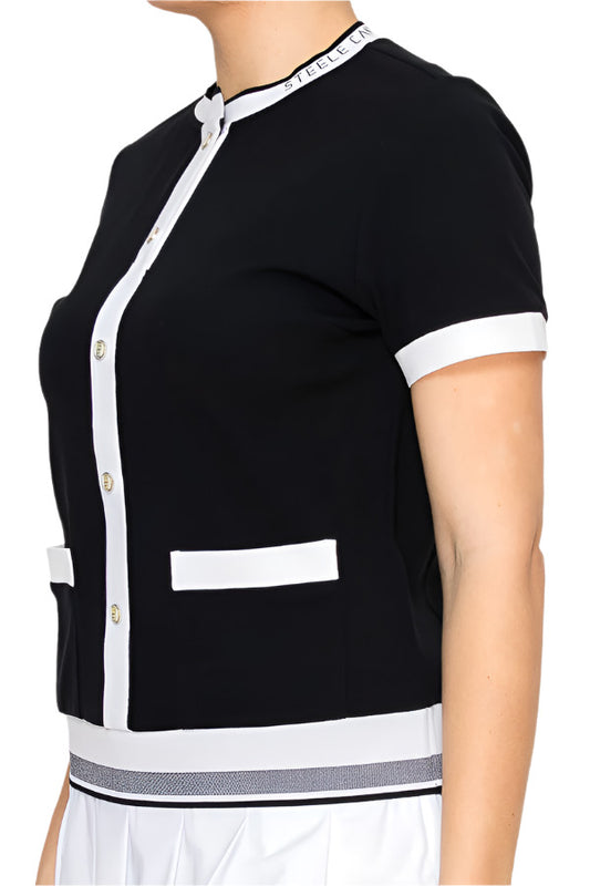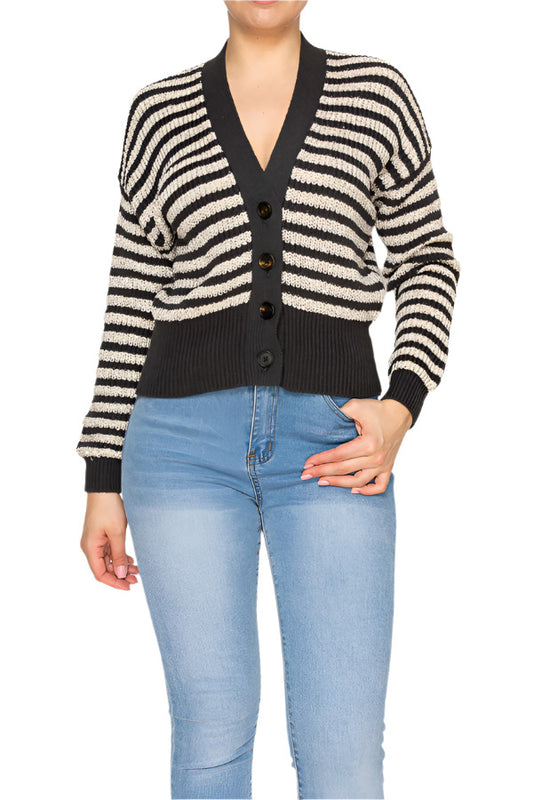 [Torbist] Monochrome Contrast Button-Up Cardigan & Skirt Set