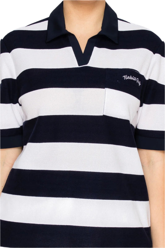 [Fairliar] Elegant Polo Shirt with Gingham Scarf Accent