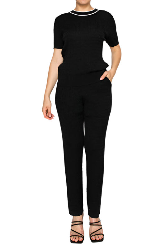 [Nabi] Knit Top and Wide-Leg Pants Set - Mocha Brown