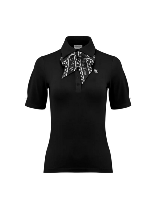 [Fairliar] Elegant Polo Shirt with Gingham Scarf Accent