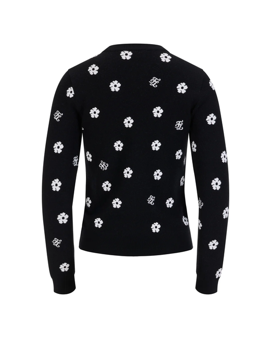 [Fairliar] Floral Point Jacquard Knit Sweater – Black