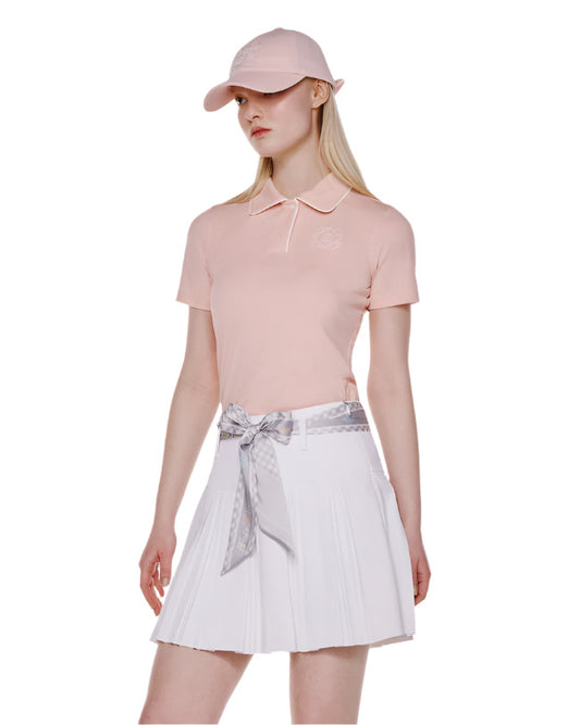Complete your ensemble with accessories like the [Fairliar] Luxe Crystal Embellished Ribbon Visor available in black, white, and beige, or the [Fairliar] Logo-Embroidered Ribbon Cap – White. These pieces not only provide sun protection but also serve as chic additions to your golf wardrobe.