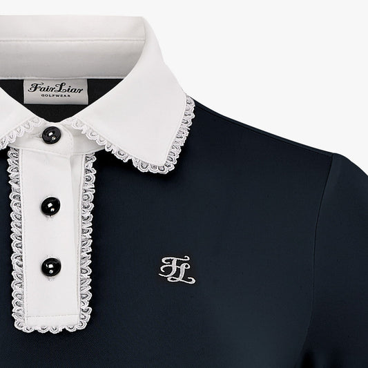 [Fairliar] Lace-Trim Contrast Collar Polo