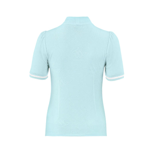[Fairliar] Monogram Embossed Mock Neck Top - Blue