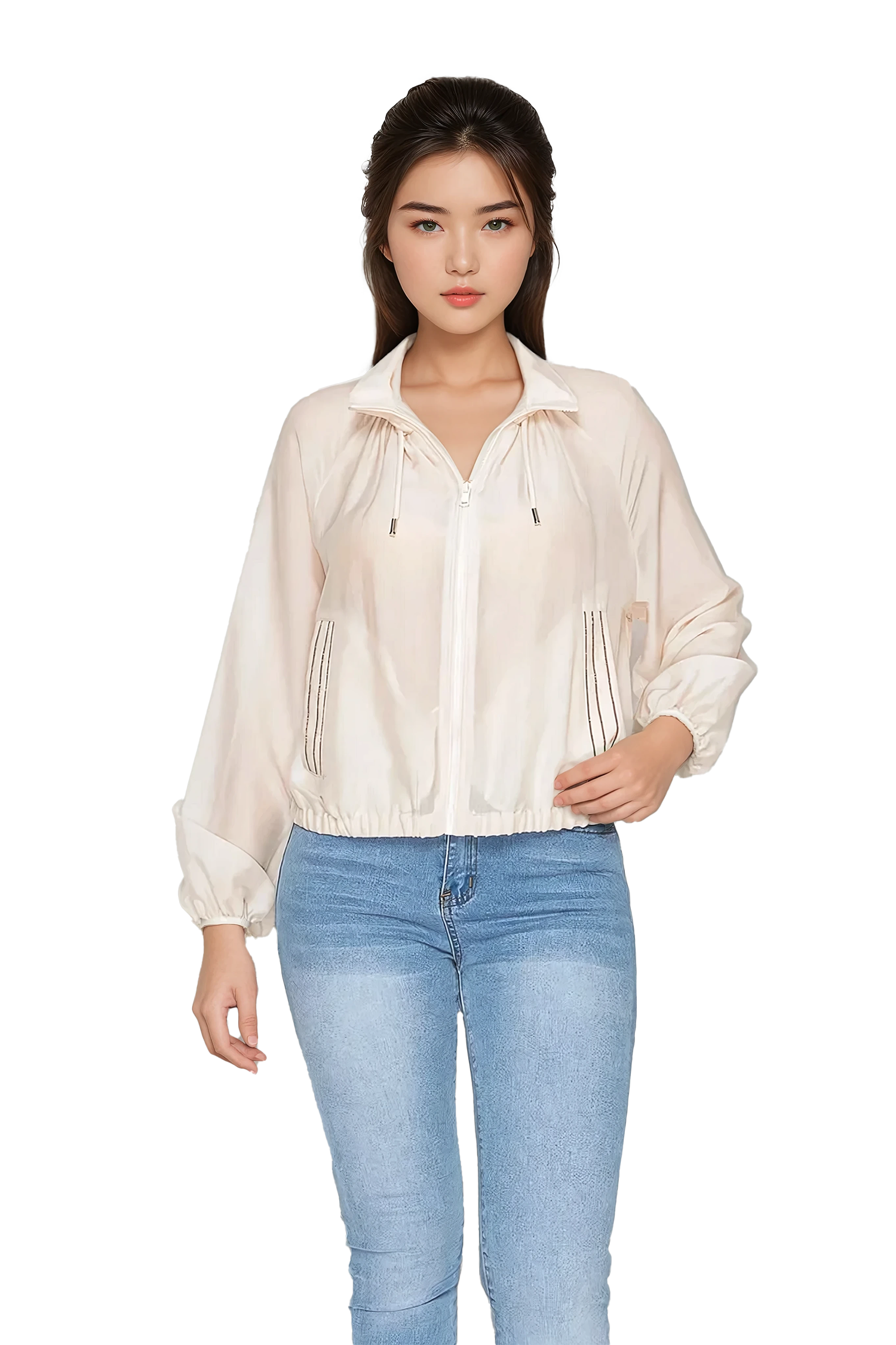 [Nabi] Sheer Zip-Up Windbreaker Jacket